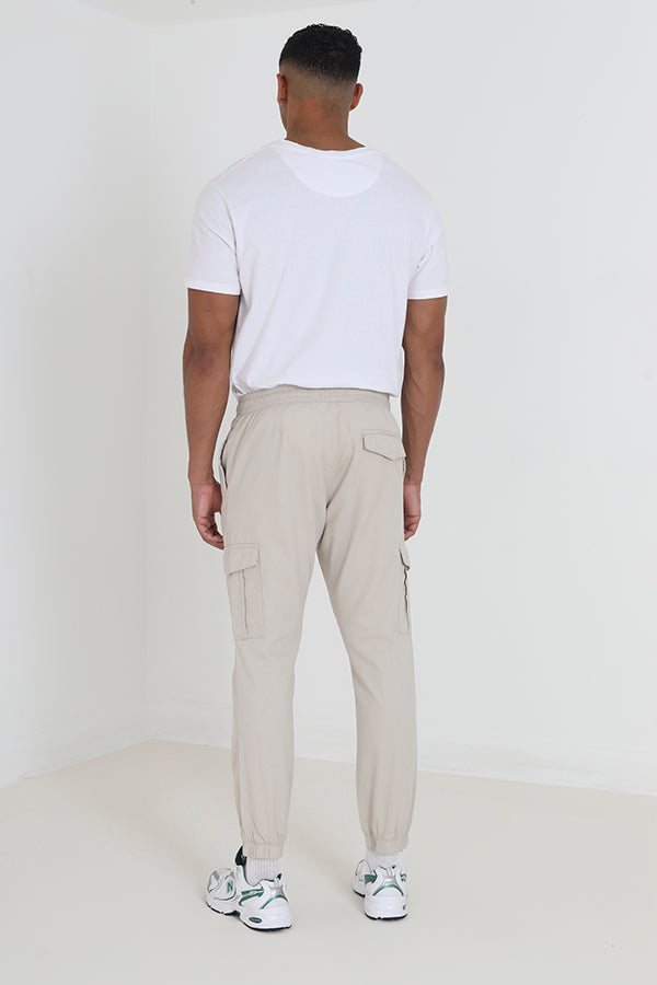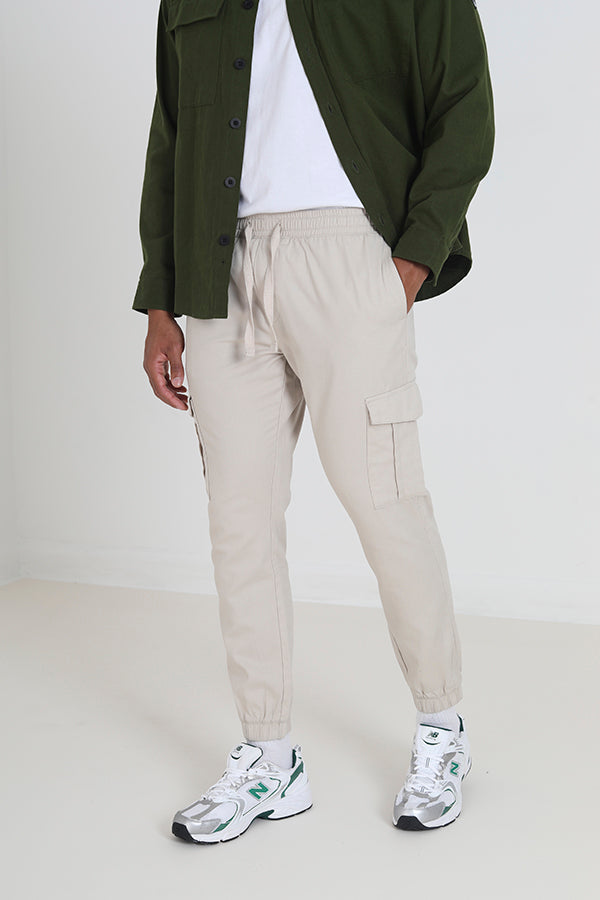 STONE ELASTICATED CUFF CARGO STYLE TROUSERS