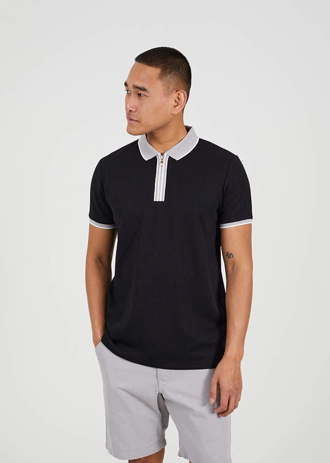 CONTRAST ZIP POLO SHIRT