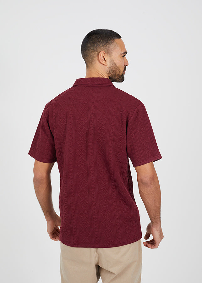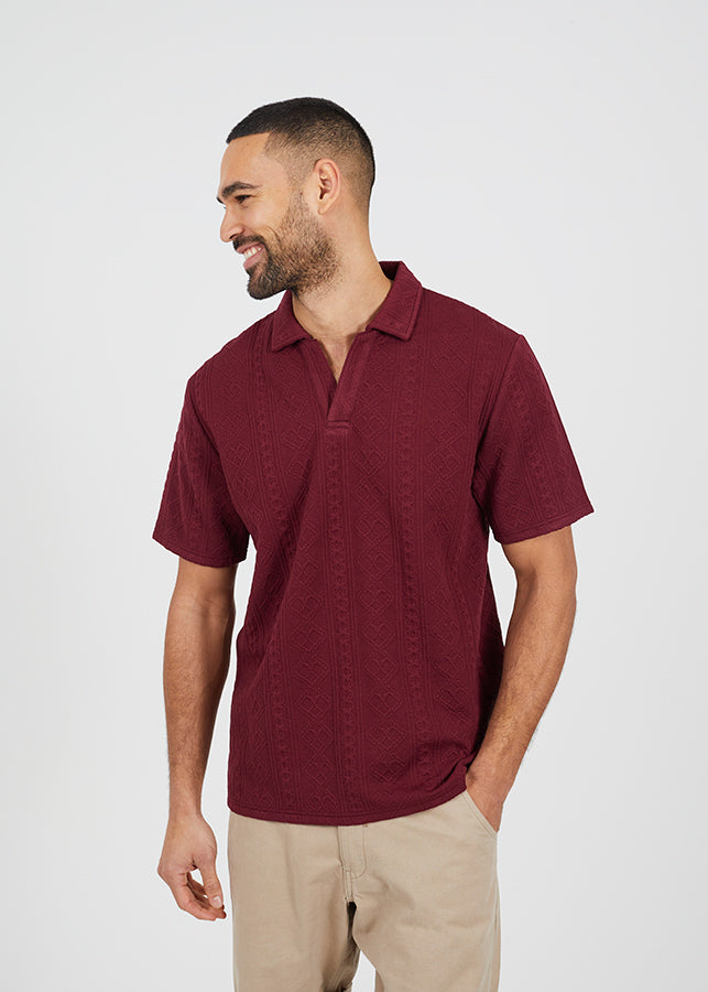 JACQAURD SHORT SLEEVE POLO NECK, LIGHT BURGANDY