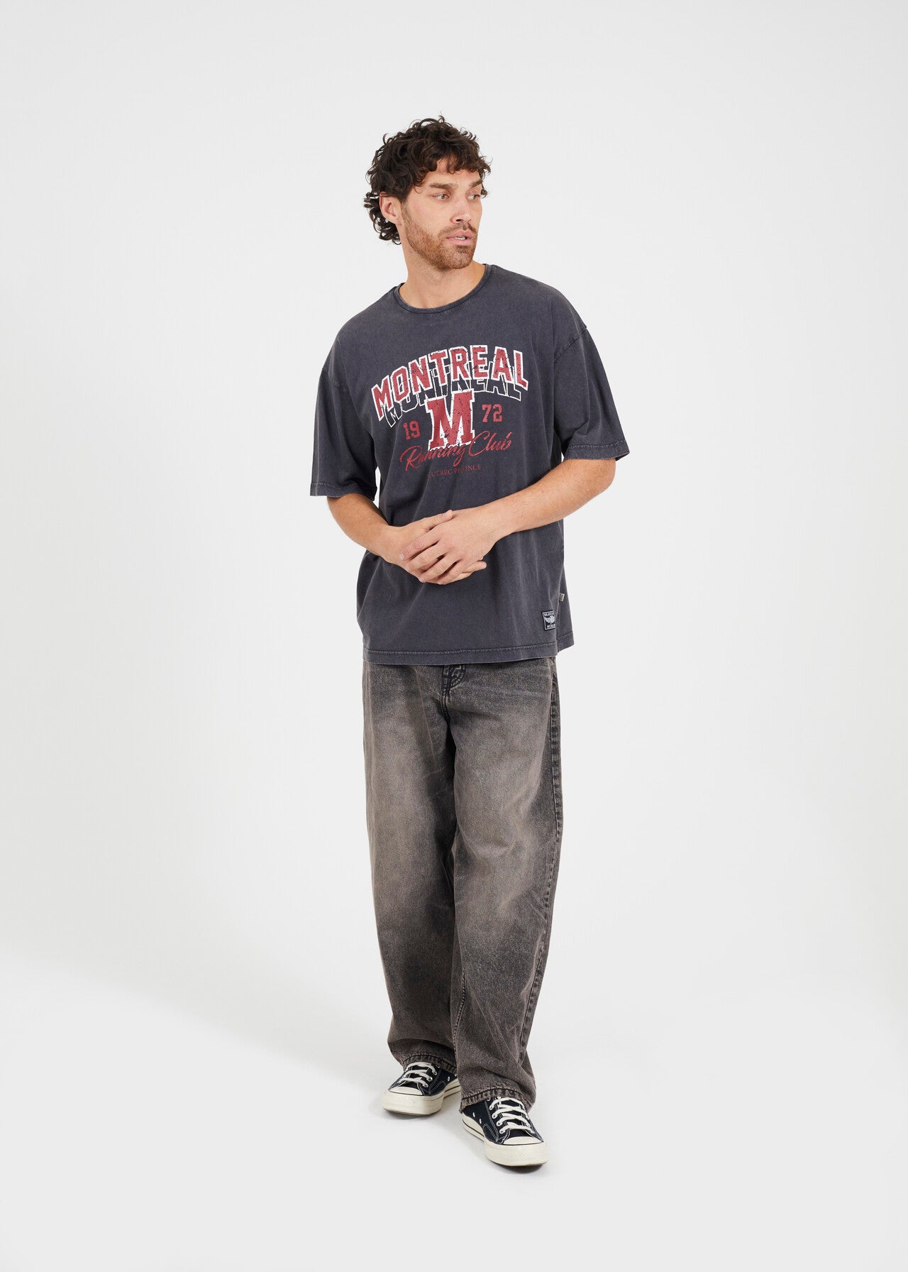 'MONTREAL' PRINTED ACID WASH T-SHIRT