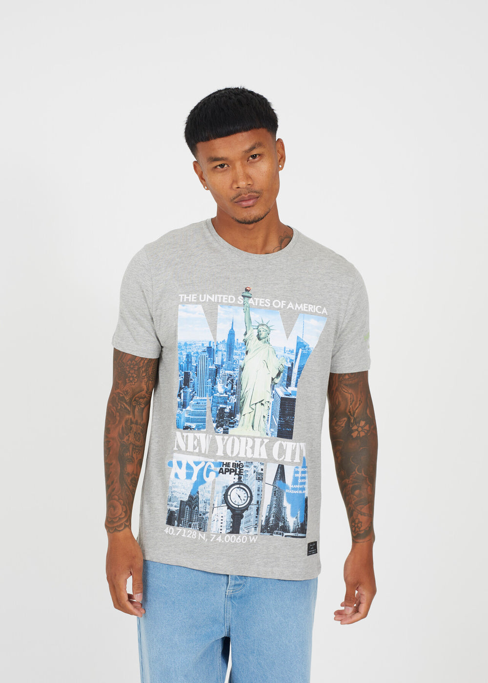 CREW NECK GRAPHIC T-SHIRT, KHAKI AND CHARCOAL