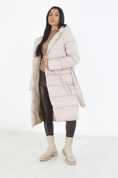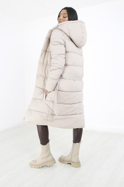 PADDED HOODED MAXI COAT WITH BELT