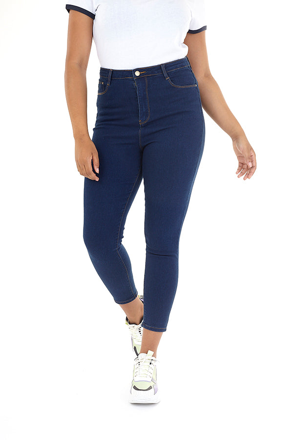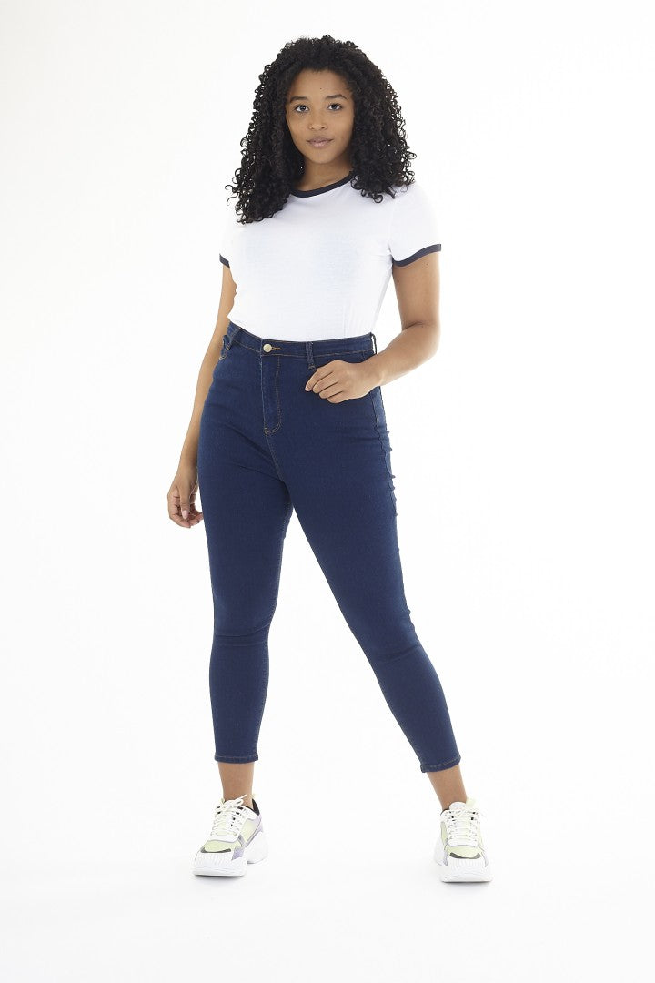 PLUS SIZE PLAIN MID BLUE SKINNY FITTED JEANS