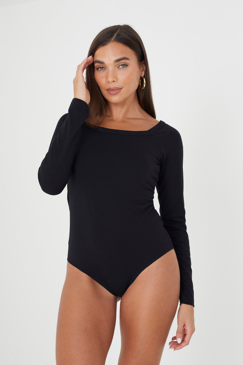 BLACK LONG SLEEVE SQUARE NECK BODYSUIT