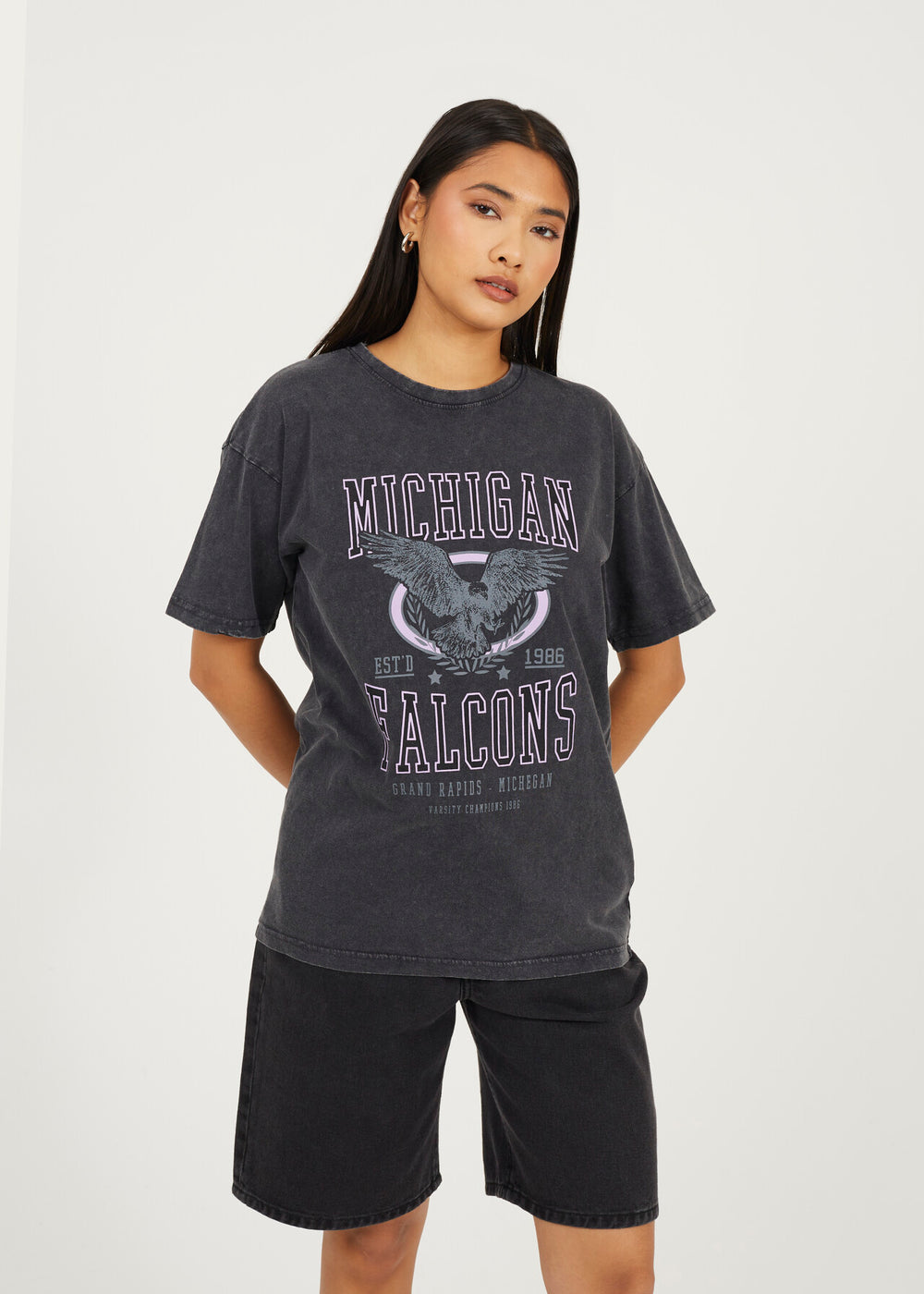 'MICHIGAN' GRAPHIC T-SHIRT, BLACK ACID WASH