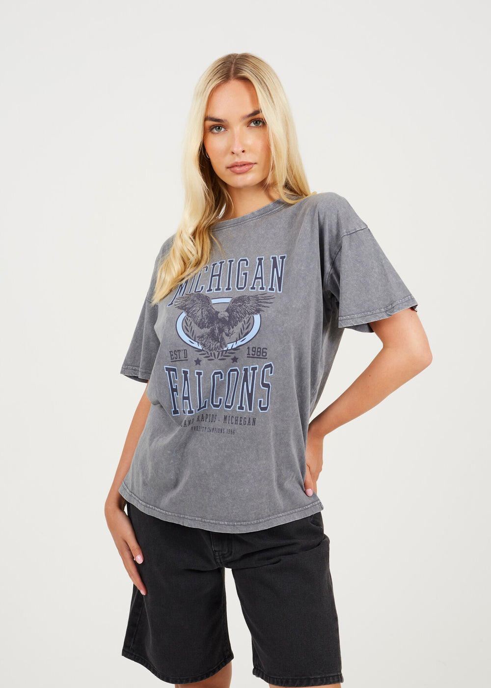 'MICHIGAN' GRAPHIC T-SHIRT, SILVER GREY ACID WASH