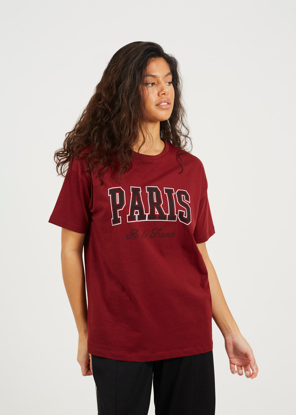 'PARIS' GRAPHIC RELAXED FIT T-SHIRT, BURGANDY