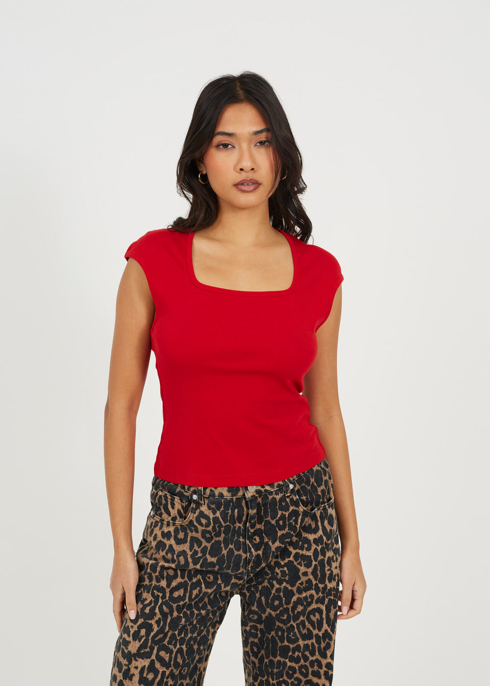 SQAURE NECK SHORT SLEEVE T-SHIRT, RED
