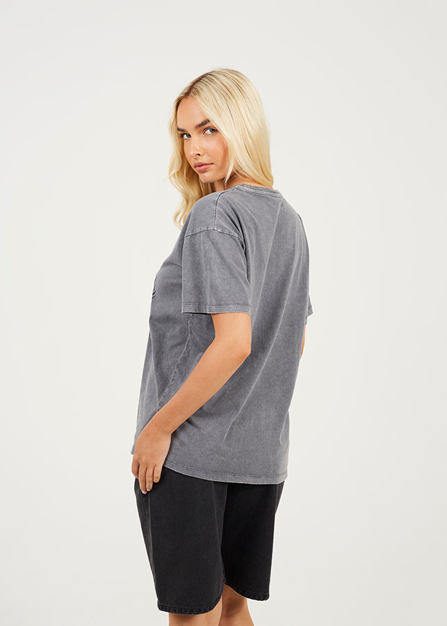 GRAPHIC 'MANHATTAN' OVERSIZED T-SHIRT, SILVER GREY ACID WASH